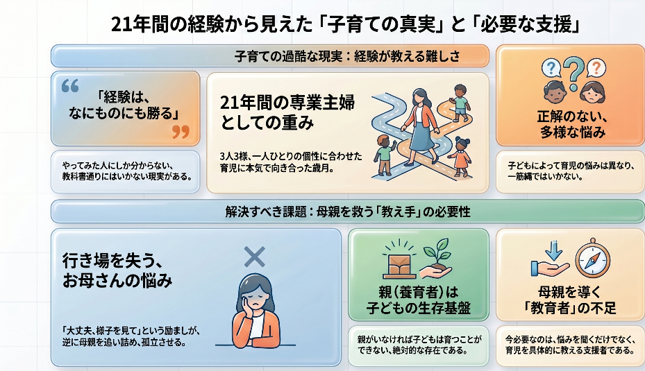 ・子育て期間は、親に人間を育てるための総合的な判断能力が必要とされる