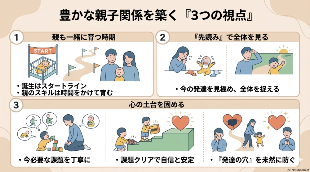 2、赤ちゃんの正常な発達を促進 ▶️ 親の学びと経験を通して子の正常な発達・成長へと支援